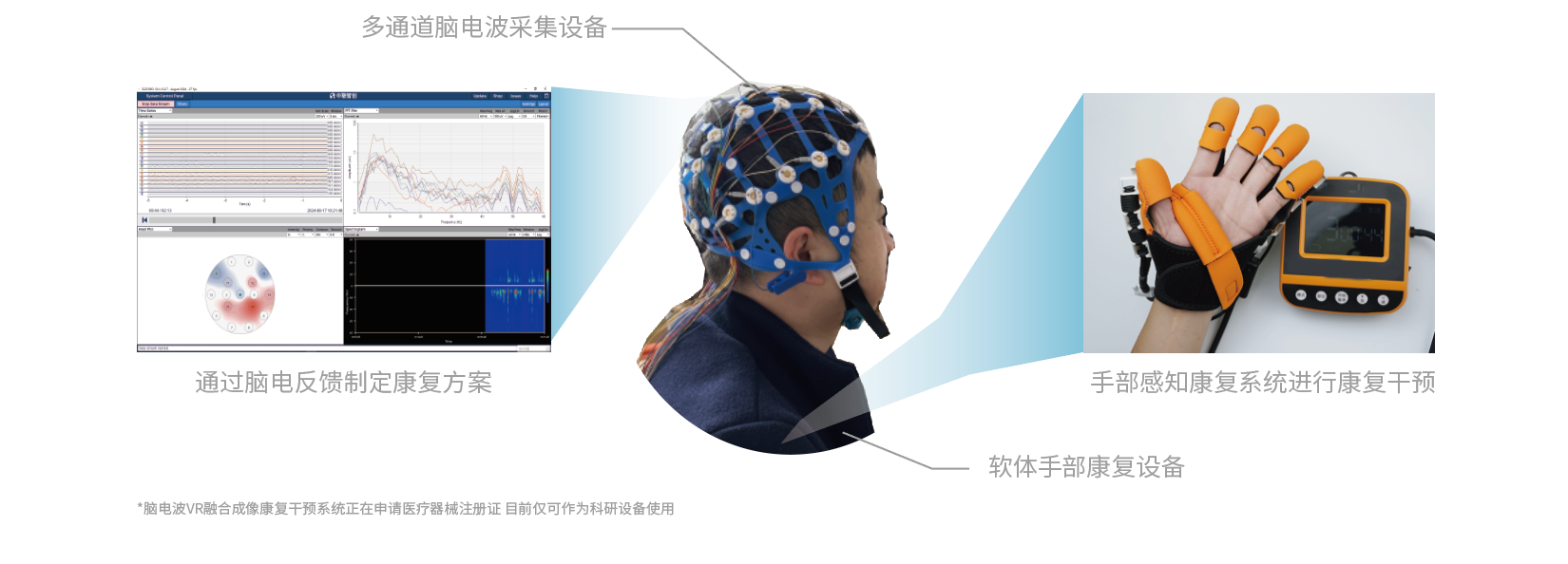 本系统以先进的脑机接口技术为核心,采用高精度多通道脑波采集帽收集大脑信号。该采集帽可捕捉精细的多通道大脑活动,所获取的数据经过复杂算法的精密分析与转换,化作精准的指令直接指挥手部康复设备,形成一个闭环的脑电反馈机制。